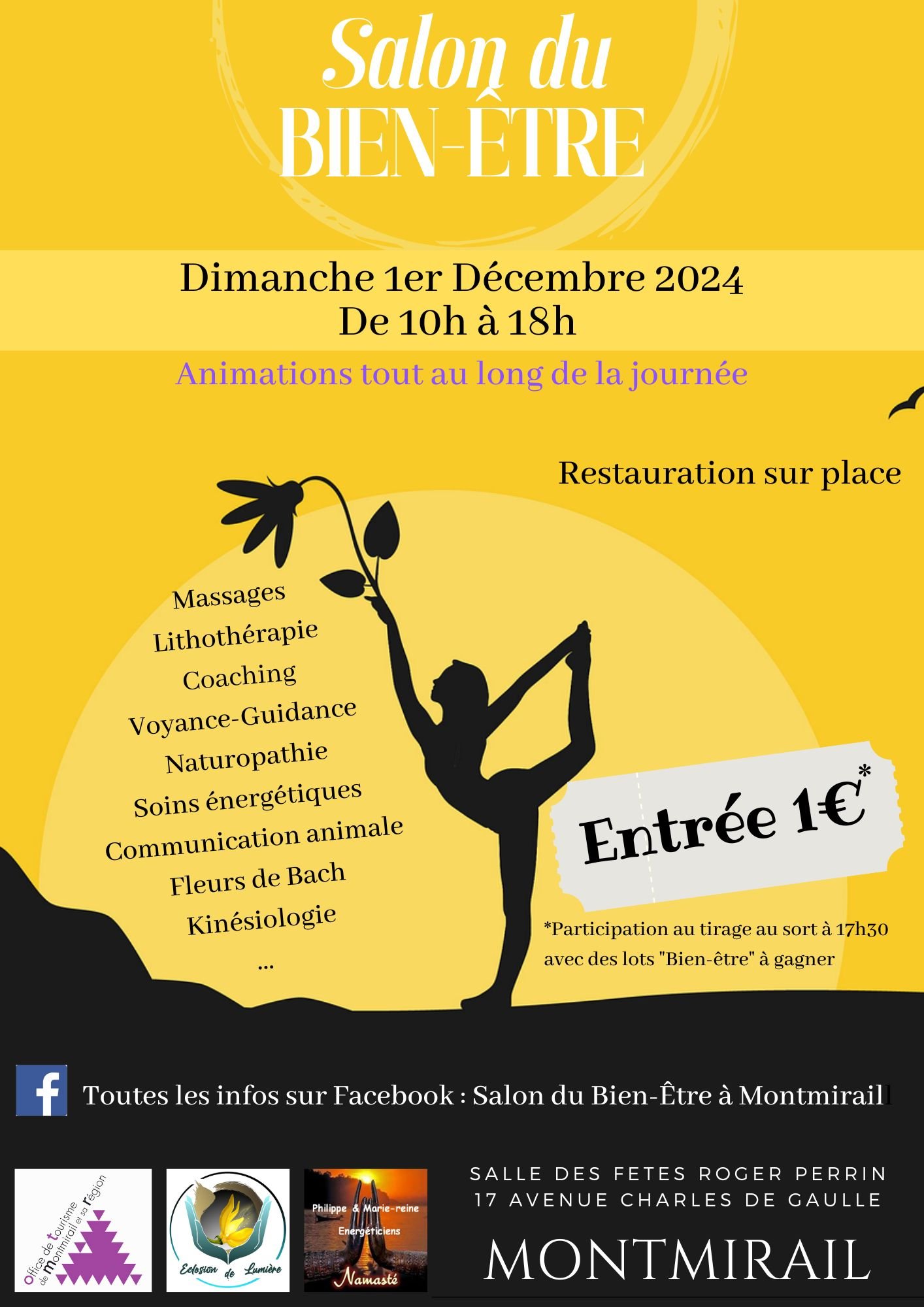 Le dimanche 1er décembre, je serai présente au Salon du bien-être de Montmirail de 10h à 18h . Je vous invite à venir me rencontrer pour échanger ensemble sur mes pratiques et mes accompagnements.
