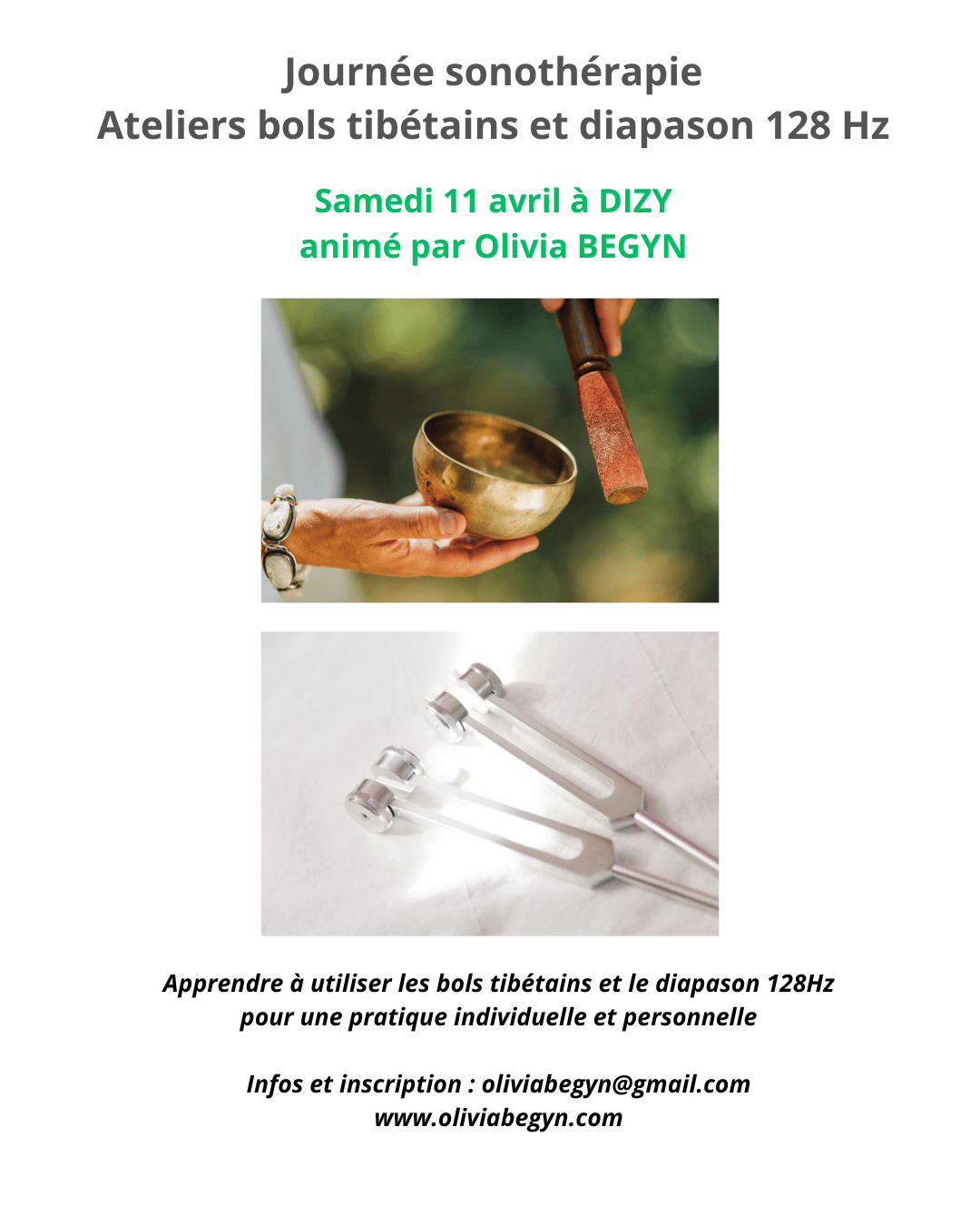 5/ Et en avant-première je t’annonce la journée Sonothérapie que je propose à DIZY le 11/04 et qui se compose de deux ateliers :