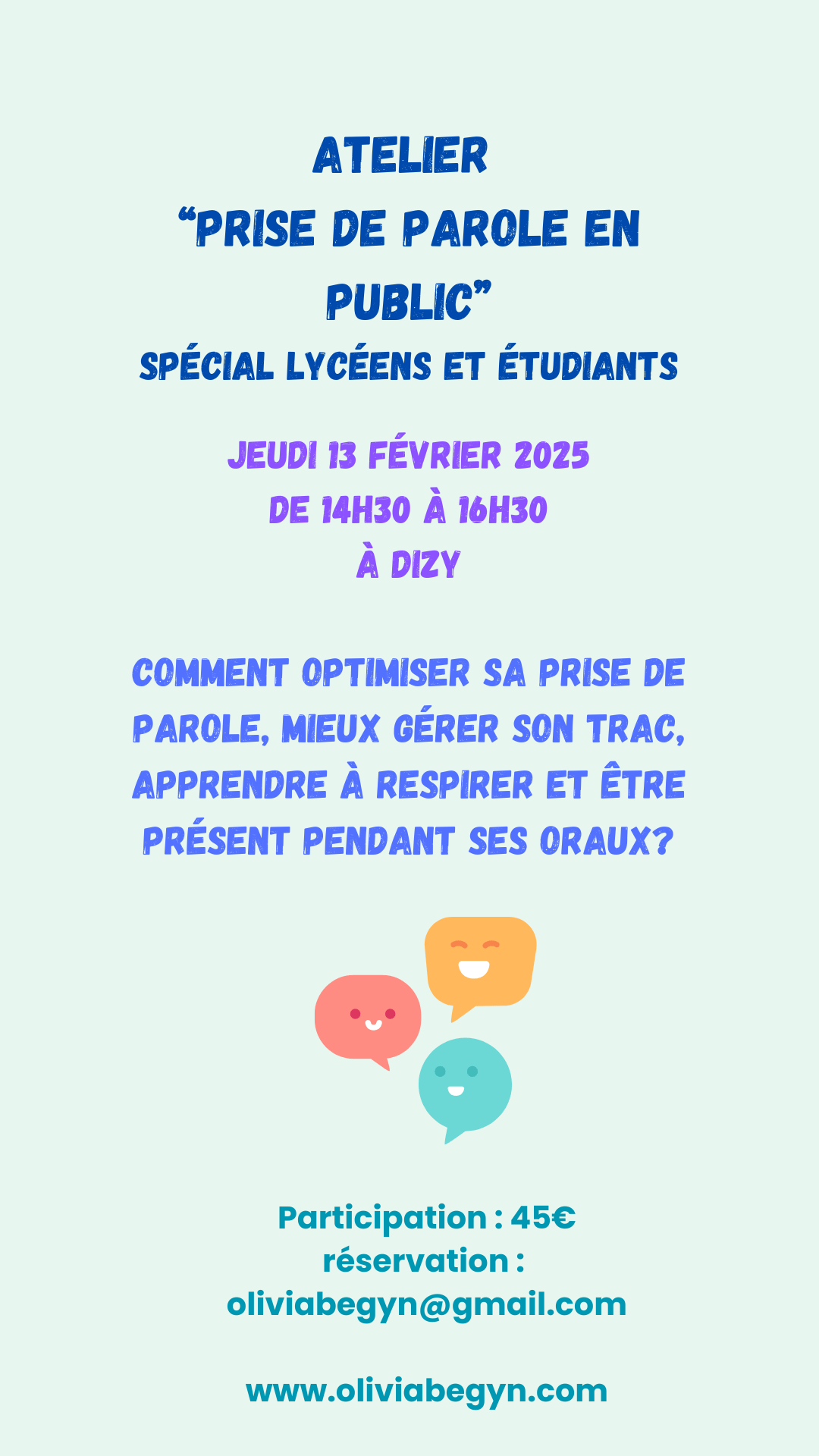 J’ai également programmé des ateliers pour les vacances de février à destinations des enfants mais également des lycéens et étudiants. Pour y inscrire vos enfants, vous pouvez cliquer sur l’image correspondante. Ces ateliers se passeront à Dizy, près d’Epernay les 11 et 13 février.